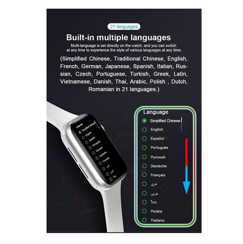 Full touch screen- measures blood oxygen, heart rate, blood pressure, call and message alerts, compatible with Android and IOS