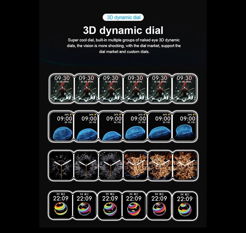 HX68 Smart Watch Full touch screen- Measures Blood oxygen, Heart rate, Blood pressure, compatible with Android and IOS, Black Color