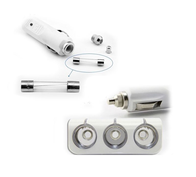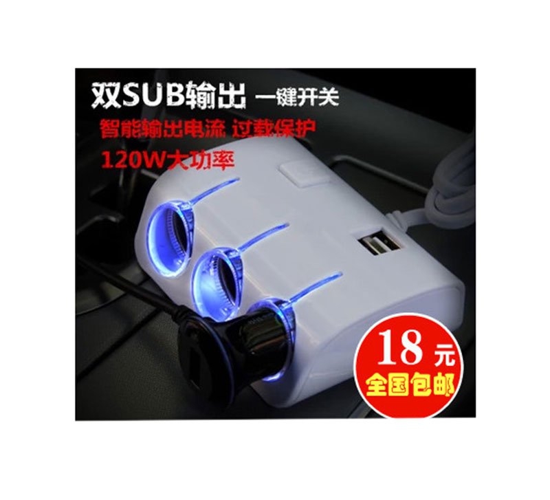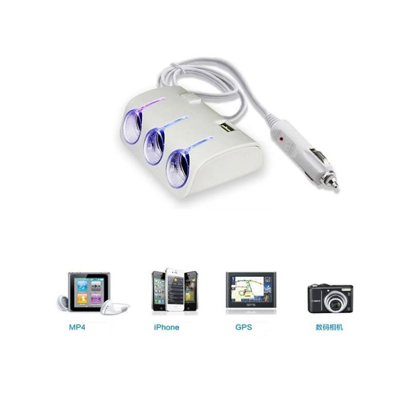 Triple car lighter joint and two USB charging outputs