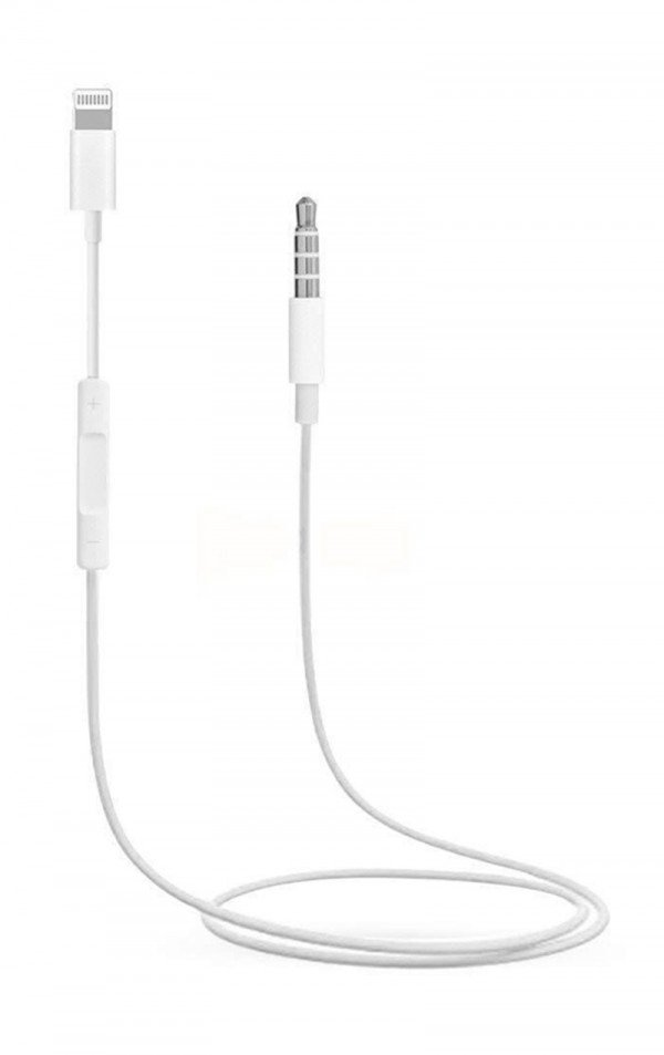 Lightning to 3.5mm Male Aux Audio Cable for iPhone With Volume Control -White