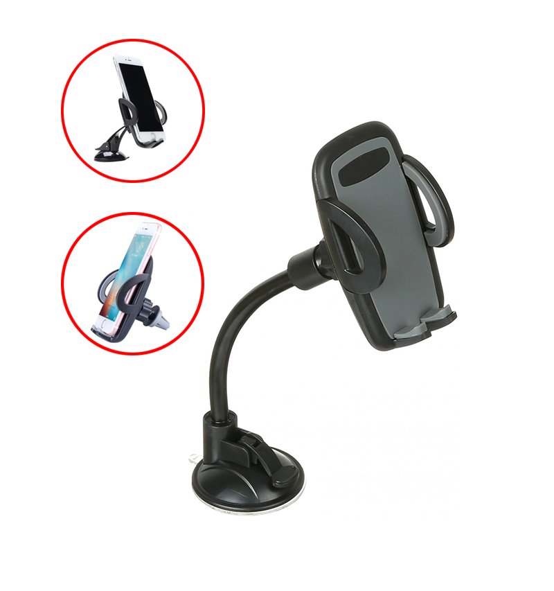Mobile holder 360 Degree installed in the glass or the dashboard or air conditioning slot for easy and safe talking and driving – B27S – Gray
