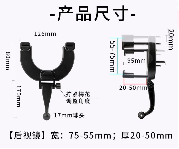 Mobile holder for the car fixed on the salon mirror is compatible with all mobiles - RX100 - Black