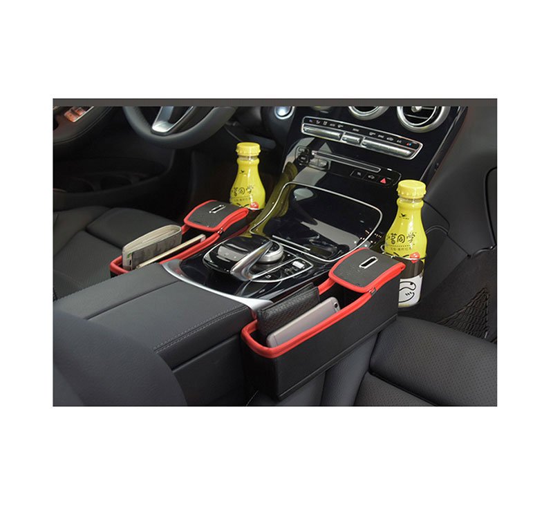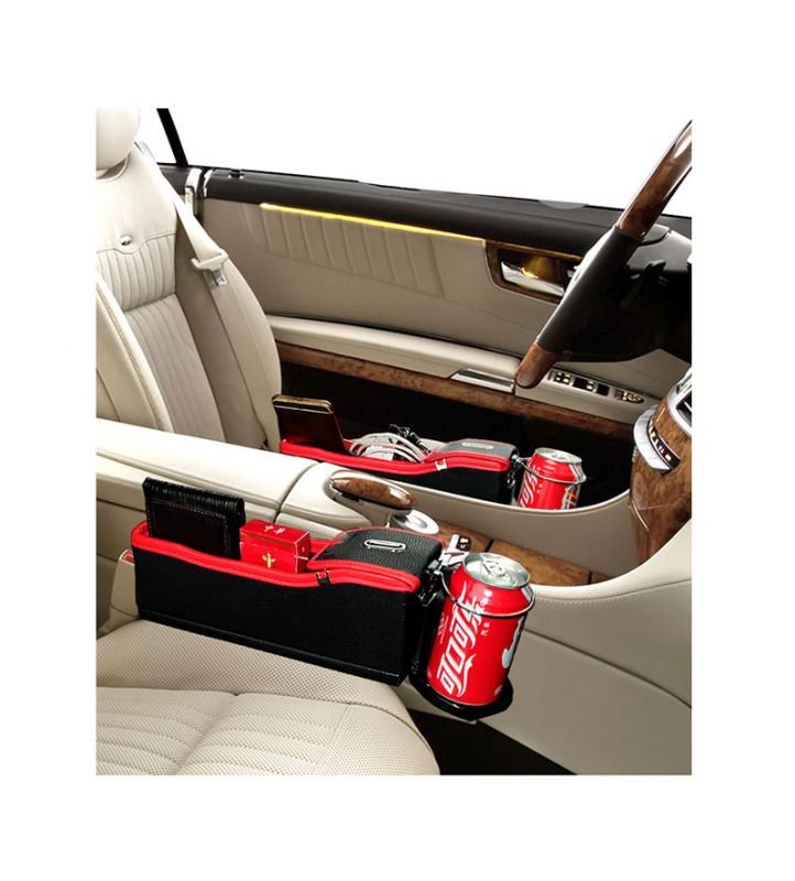 Multifunctional car seat side organizer for all makes and models of cars ( 2 Pieces ) – WV100 / Red X Black Color