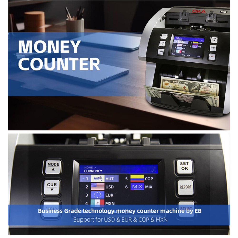 OKA Bill Counting for sorting and counting various currencies and detecting counterfeiting (Dollar - EURO - Chinese yuan - Turkish lira) / Model OKA-MIX102
