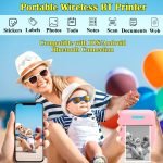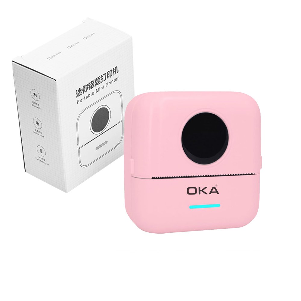 OKA Portable mini printer wireless for children, graphics and photo printer – small thermal label printer – works through the application / Model BVV10 – Pink Color