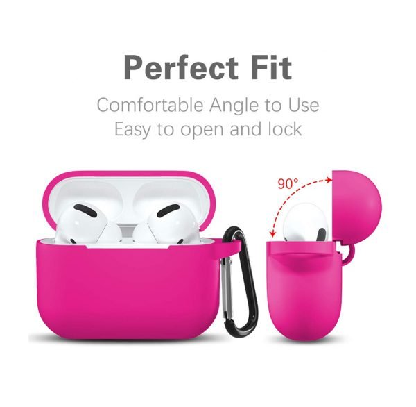 Protective Silicone AirPods Pro Case with hook Hot Pink Color