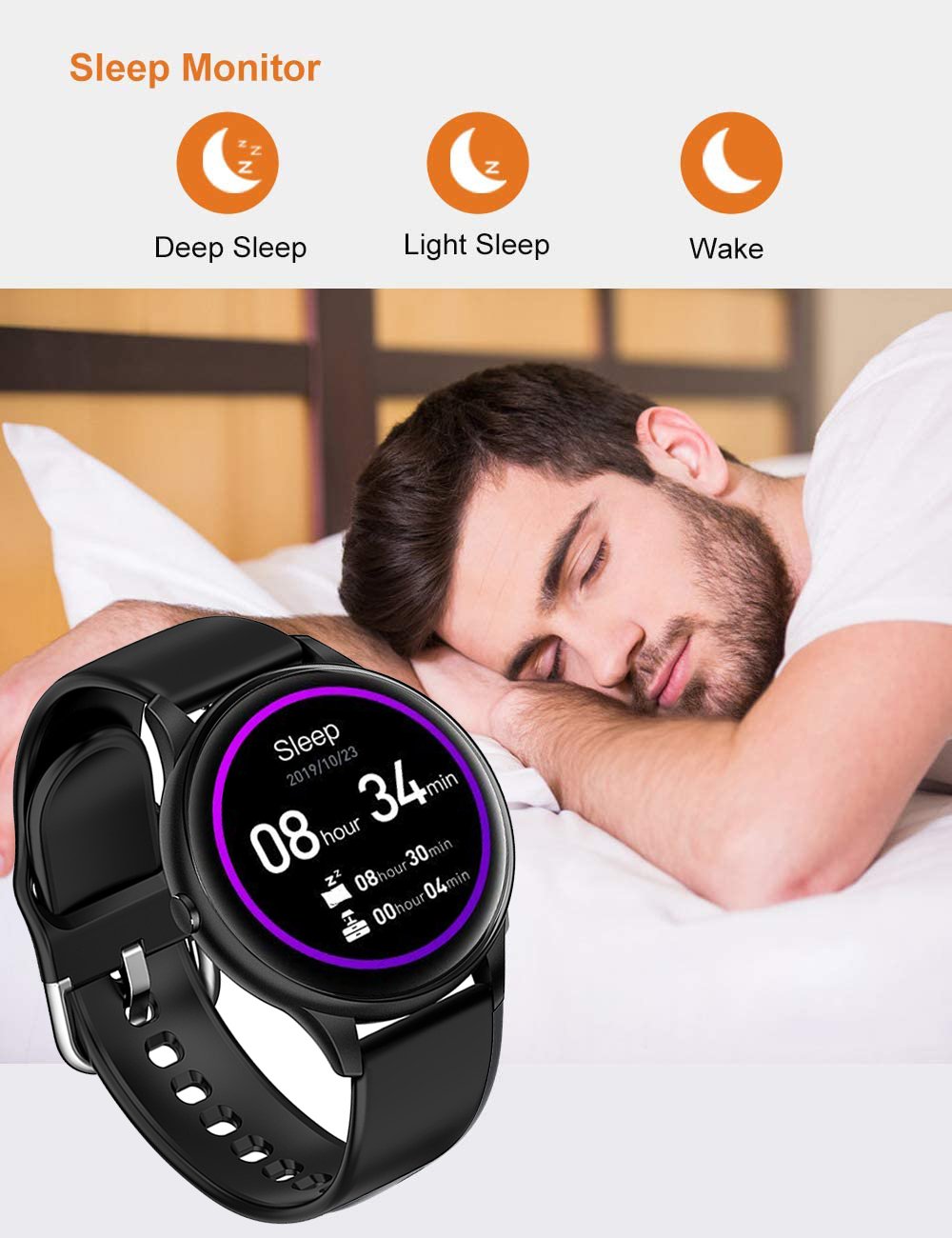 Sleep monitoring (sleep time, sleep quality, day and night time)