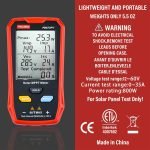 【Latest Upgrade Tester】Now, it’s a breeze to measure any solar panel under 800 WATTS & 60 VOLTS!Thanks to the snazzy big LCD screen,you can read the values crystal clear,even under the bright sunlight.A single, magic measurement display that shows all the essential values in one go, making your work super-efficient. Designed with portability and convenience in mind, this meter is both lightweight and easily portable,making it an essential companion for anyone involved in the solar panels field.