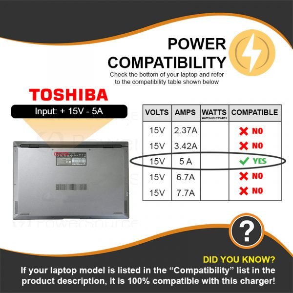 Please check the voltage compatibility at the bottom of the laptop or under the battery.