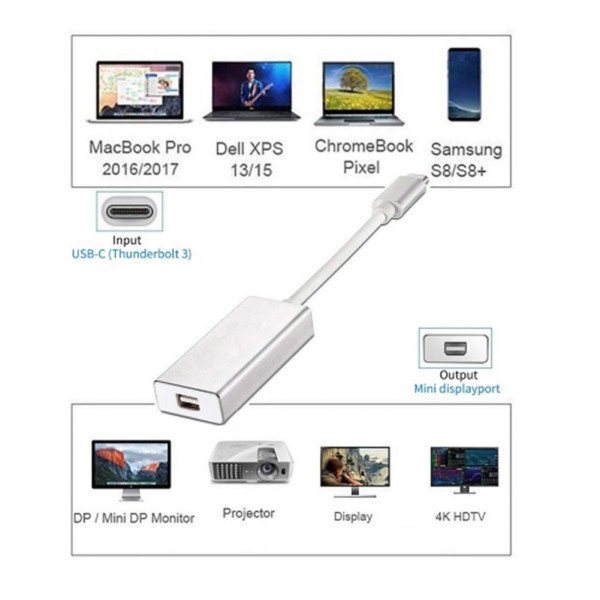 USB Type-C To Mini DisplayPort Adapter for Macbook – silver