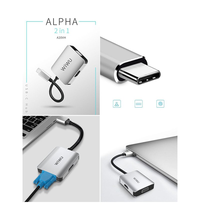 WiWU A20VH 2 in 1 Type-C to VGA & HDMI for MacBook