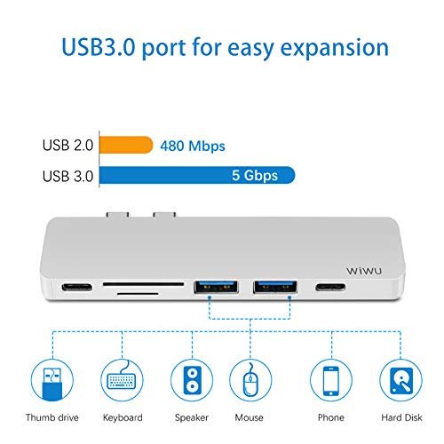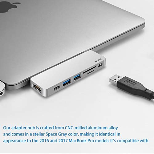 WIWU MacBook Pro Hub Adapter 7in1 with 2X USB 3.0 Ports, 2X USB-C Charging Port,1X Hdmi 4K Port,1x SD and Micro SD Card Reader for MacBook