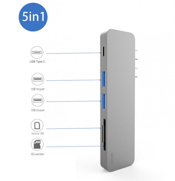 WIWU T8 Lite 5-in-1 Type-C Hub Adapter COMPATIBLE FOR MAC – Grey