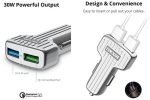 BEDO Car Charger with 2 output Fast Charging Qualcomm Quick charge 3.0 with Android cable White Color