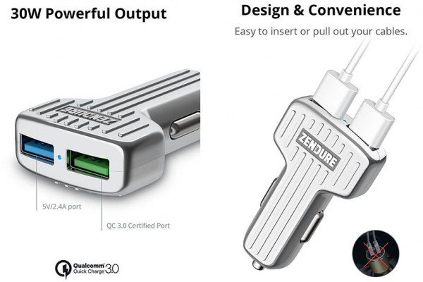 Zendure Quick Charge Dual USB Car Charger Silver Color